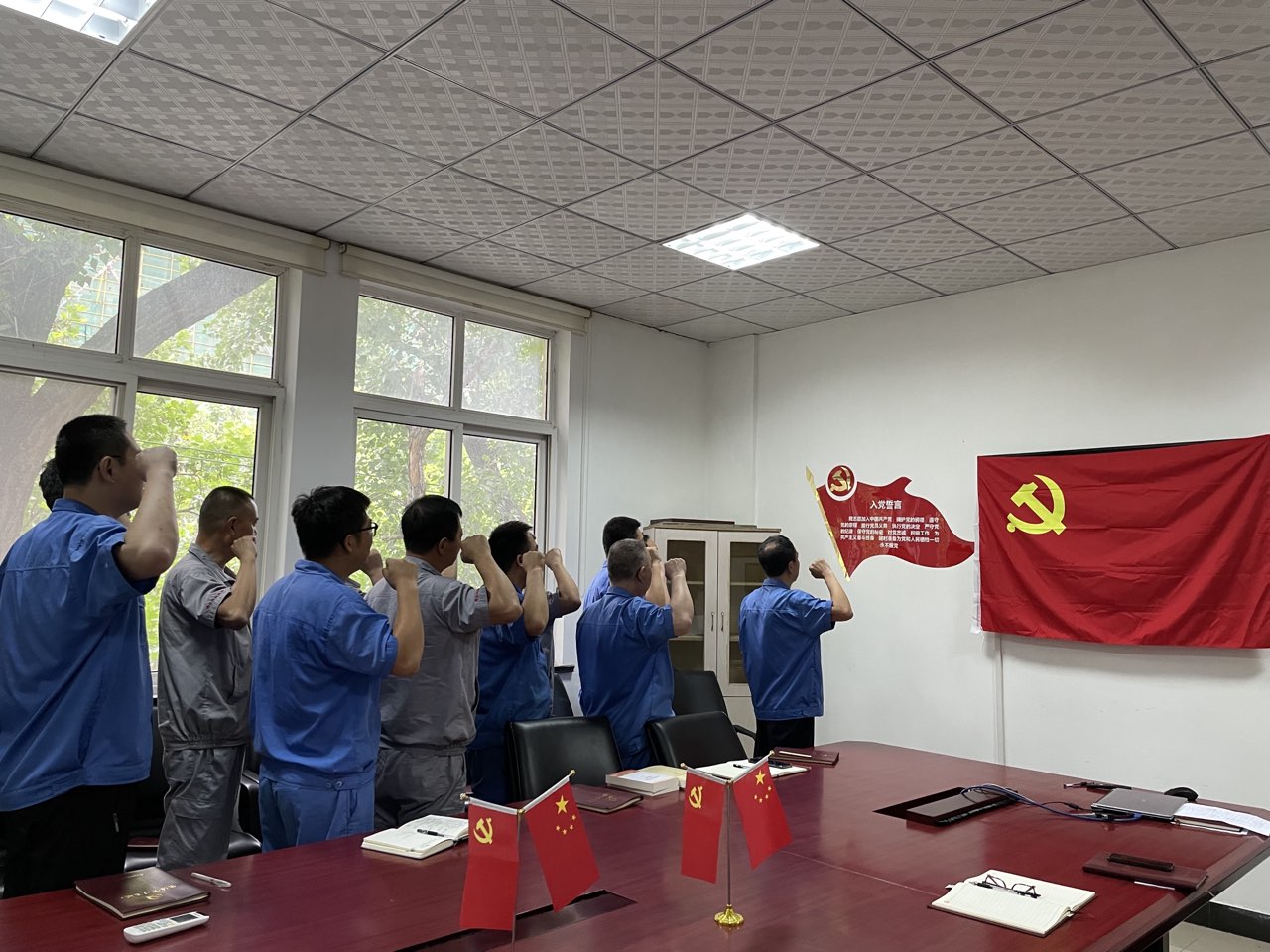 緊接著,公司全體黨員面向黨旗,在黨總支書記的帶領(lǐng)下,高舉右拳,莊嚴宣誓:“我志愿加入中國共產(chǎn)黨……”,在重溫入黨誓詞中,回憶入黨初心,強化使命擔當,凝聚力量,振奮人心,進一步激發(fā)了廣大黨員干部干事創(chuàng)業(yè)的工作熱情及為實現(xiàn)中華民族偉大復興而努力奮斗的信心和決心。